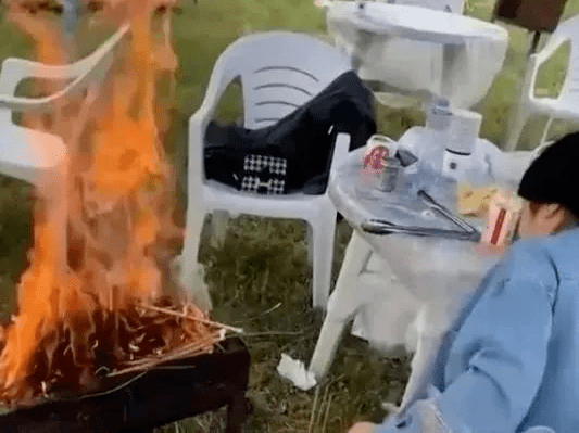 2022年3月27日,浙江嘉兴一市民约朋友一起户外烧烤,在烧烤过程中因为火太小,就拾来一些枯树枝助燃,结果加入枯树枝后,烤架内的火焰蹿起数米高,猛烈燃烧直到把烤架烧穿。