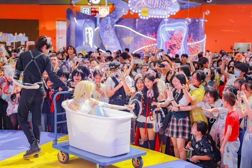 当然,《人鱼陷落》的海洋宫殿以流动的蓝色海洋环绕着超还原的coser,再加上巨型流麻加持,是每个现场观众绝不想错过的绝佳拍照打卡地。