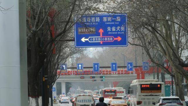 小寨十字北侧,可变车道通过空中电子标牌进行提示