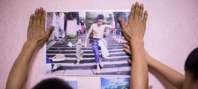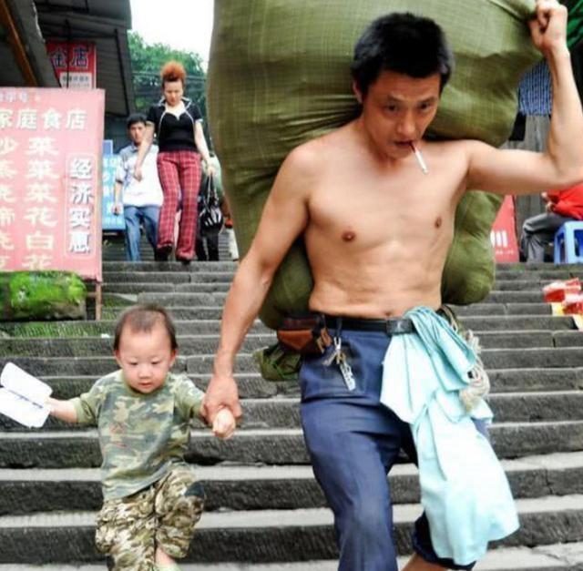 2010年,当时还是大学生的许康平抓拍了这样一张照片,一位棒棒,肩上扛着一包几乎比他身体还高的包裹,嘴里叼着一根廉价香烟,正在下阶梯,在重庆,这本是一张再普通不过的照片,但是最吸引人眼球的,还是他右手牵着的那个只比他小腿高一点的小男孩。