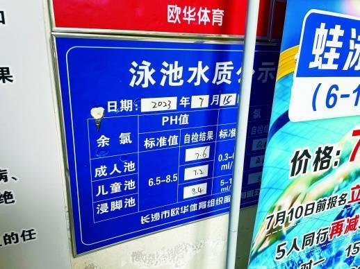 7月18日,兵华游泳池,水质公示牌未及时更新。
