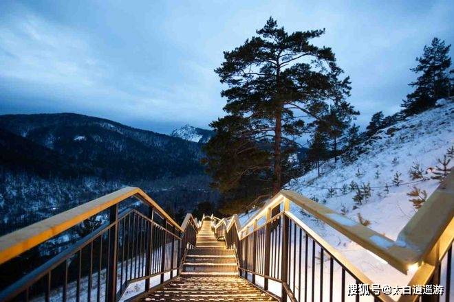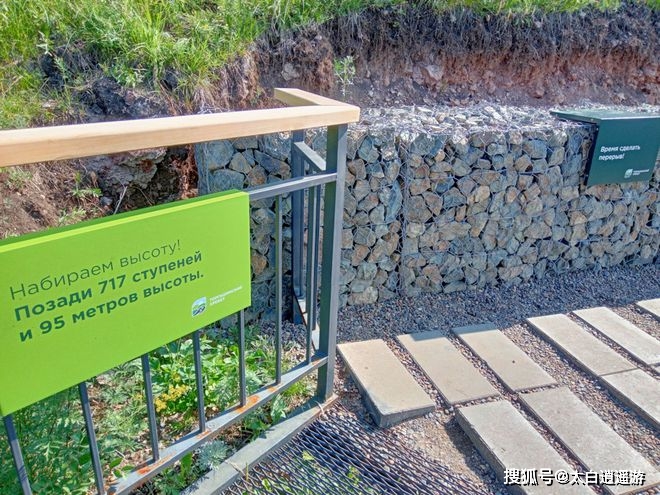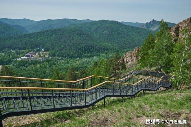 楼梯沿途设有几个观景平台和一些长椅,最顶部也有一个观景台,设有木制的吧台和休息椅。走在这条山地楼梯上,你可以看到托尔加辛斯基山脉和巴扎伊哈河的绝妙风景。