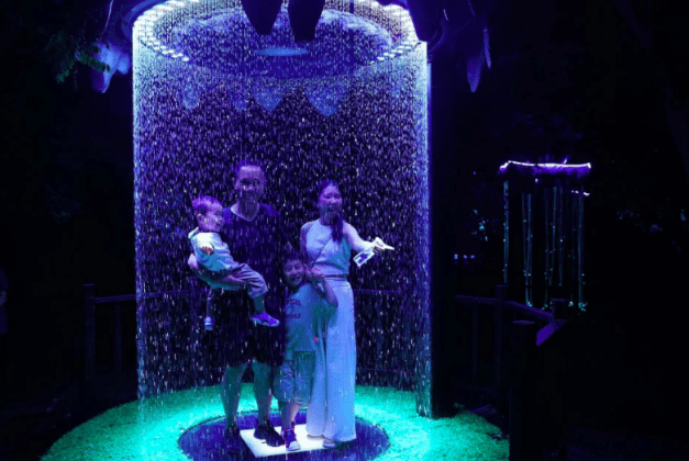 游客穿过一条亦真亦幻的时空隧道,开启了浪漫的仲夏夜之梦。来到无敌网红“云镜”空间,一簇簇“云朵”飘在空中。沿着“谜光”小路,来到一片“琉璃森林”,驻足在奇光巨塔前,观看一场流光魅影的魔术。还有会下雨的云、水中的秋千、满星点点的“萤火虫”……每一个角落都是拍照打卡的绝佳位置。