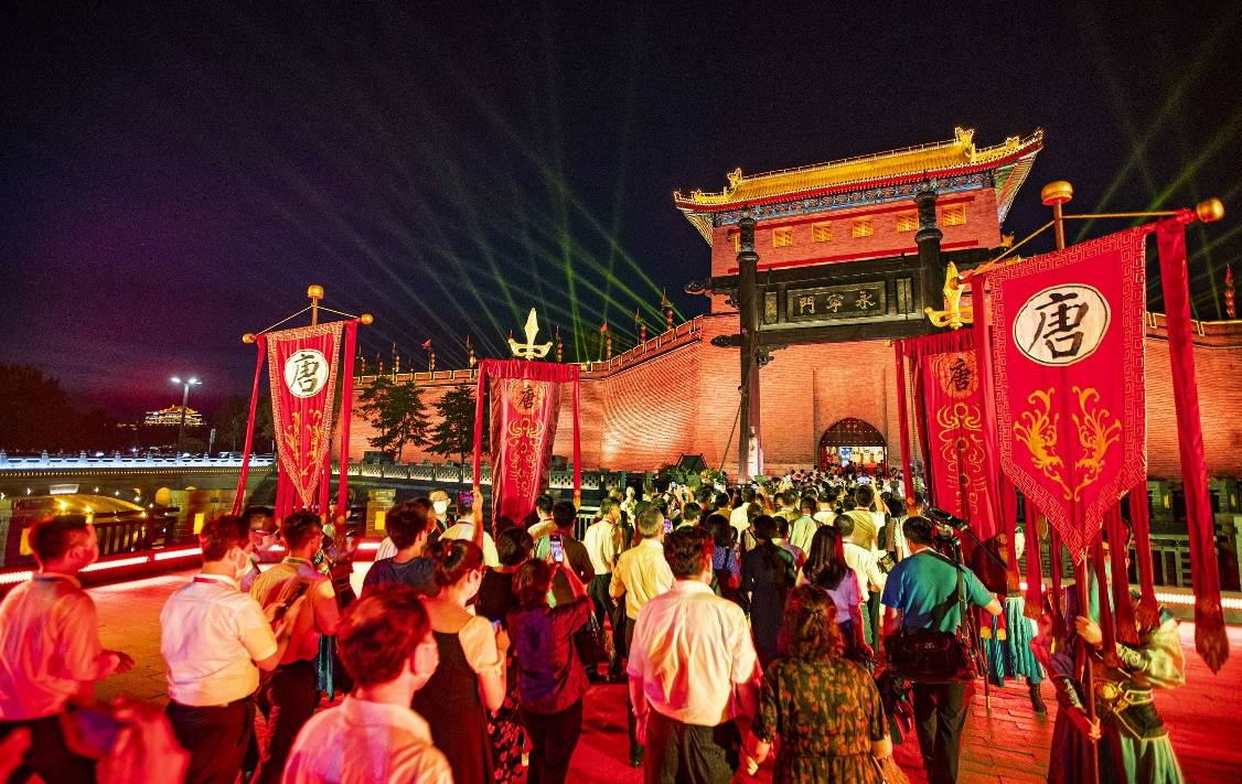 据西安曲江城墙旅游发展有限公司副总经理刘洋介绍,进入7月,西安城墙迎来客流高峰,较2019年7月增长了110%,其中近五成游客在17时以后来到城墙游览,演出现场近700个座位几乎场场爆满。如果从含光门登城墙,沿途可以打卡含光门遗址博物馆,在“夯土断面”中感受西安城的历史演变。