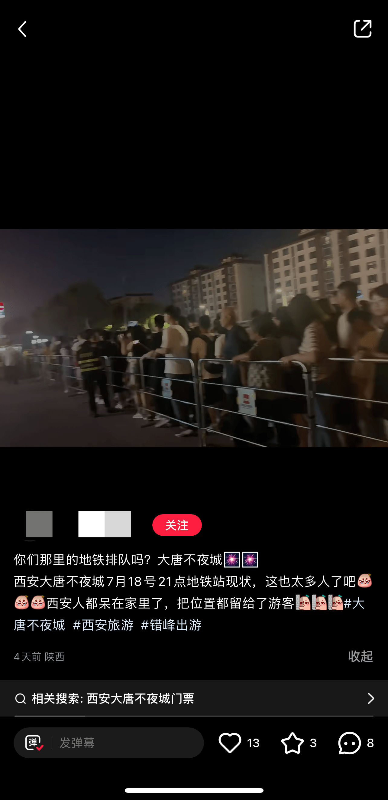 而在另一位网友的笔记中,其拍摄了7月18日21时西安大唐不夜城的地铁站现状,视频中可见,地铁站外大排长队。