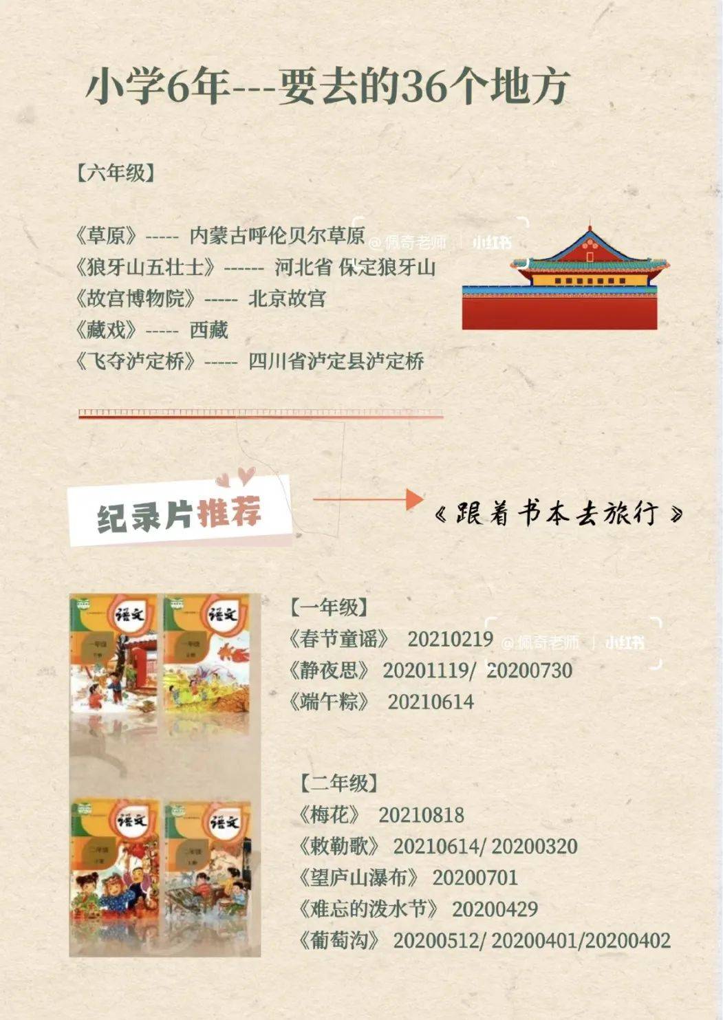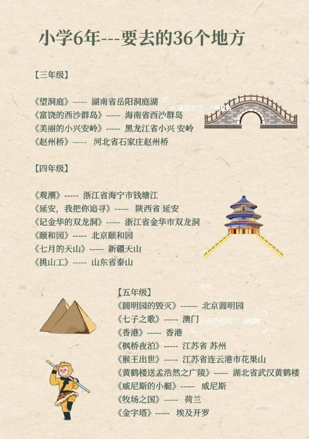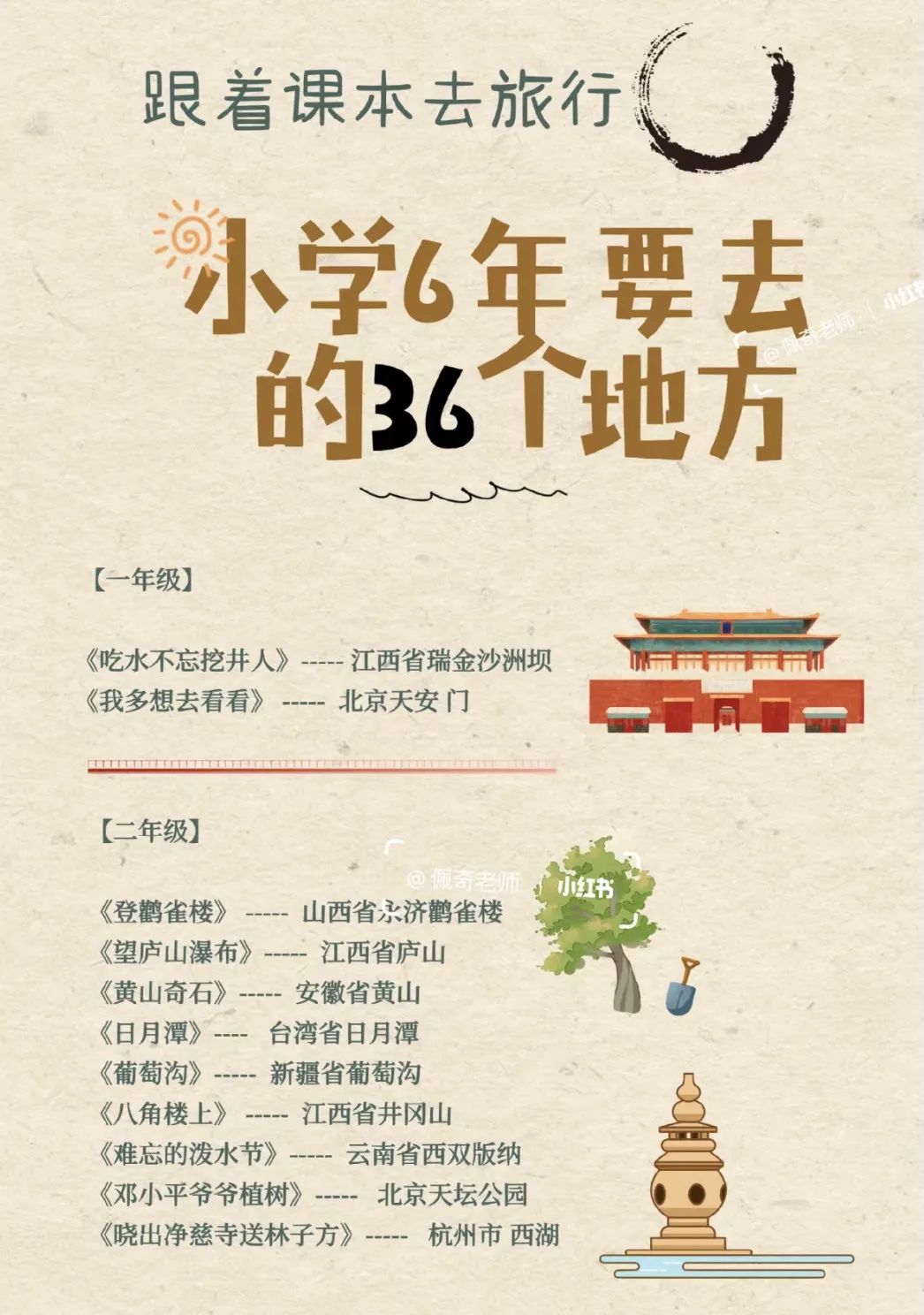 @博主佩奇老师制图:小学生6年要去的36个地方