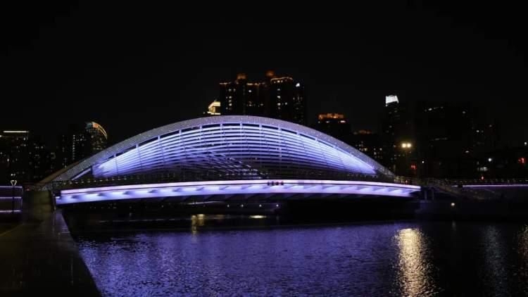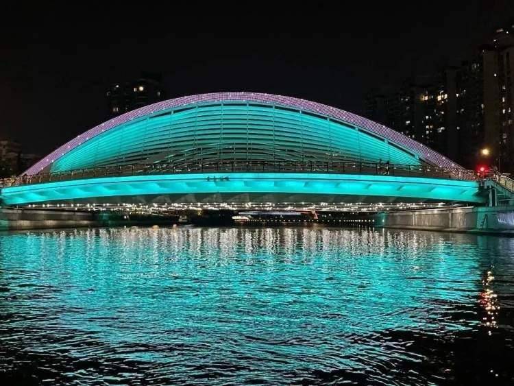 2022年12月15日,“悠游苏州河”水上航线正式投入运营。为了在夜间打造同样精彩的灯光景致,丰富游船夜间航线的观光体验,区绿化市容局对昌平路桥景观灯光进行升级改造,在原有设施的基础上启动桥底亮化工程,以达到“360度美丽无死角”的效果。