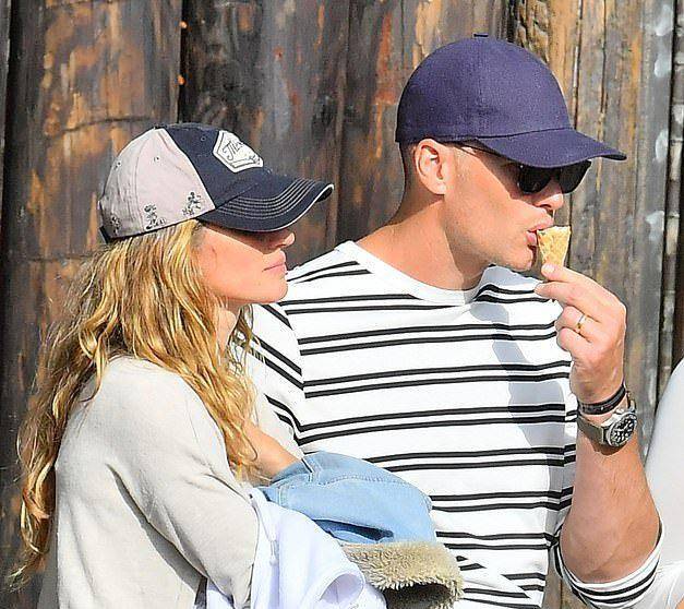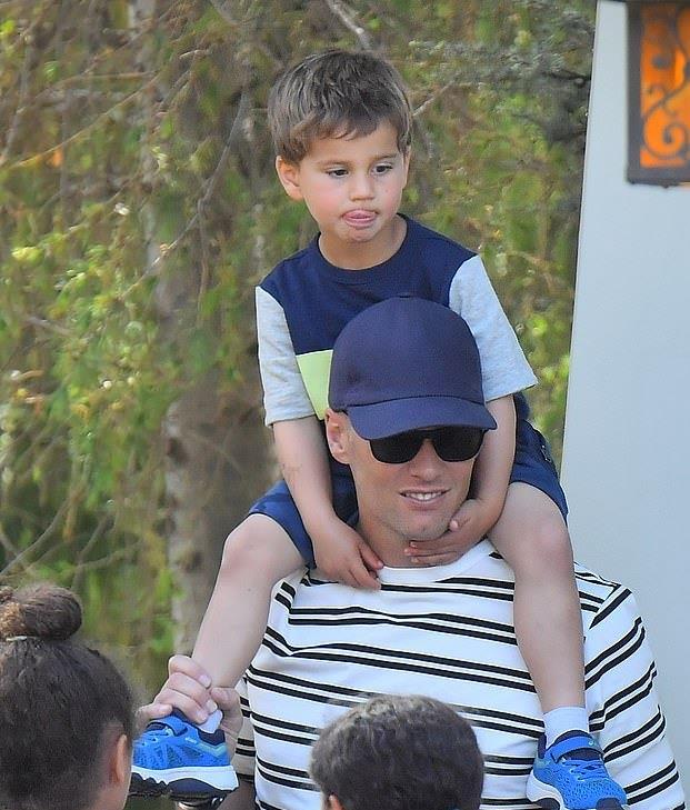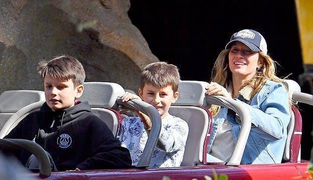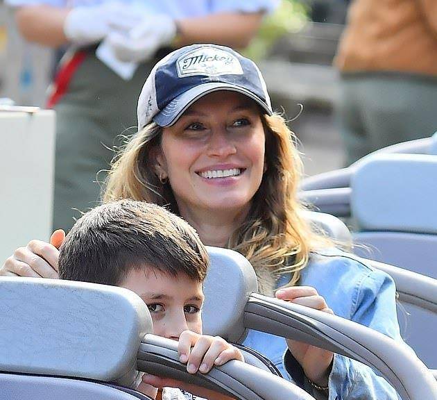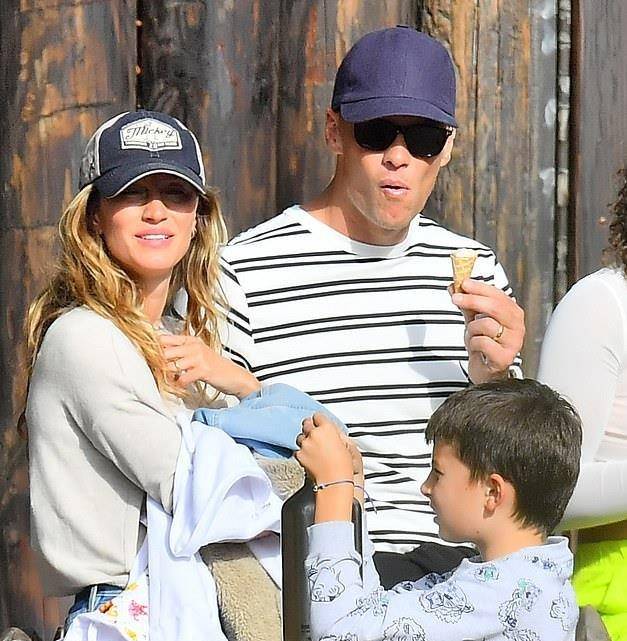汤姆·布雷迪当天穿着休闲,戴着这样的鸭舌帽,穿着条纹T恤,就像一个20岁的阳光男孩,吉娘娘的身材和外貌这些年几乎没有变化,虽然孩子们都已经这么大了。扬尼斯和丈夫汤姆·布雷迪有两个孩子,分别是9岁的本杰明·瑞恩、6岁的薇薇安·莱克和11岁的约翰·爱德华。11岁的大儿子是汤姆·布雷迪和前妻的儿子,现在和吉娘娘一起长大,所以这次他带着三个娃娃出来和一家5口一起玩,显得非常幸福。