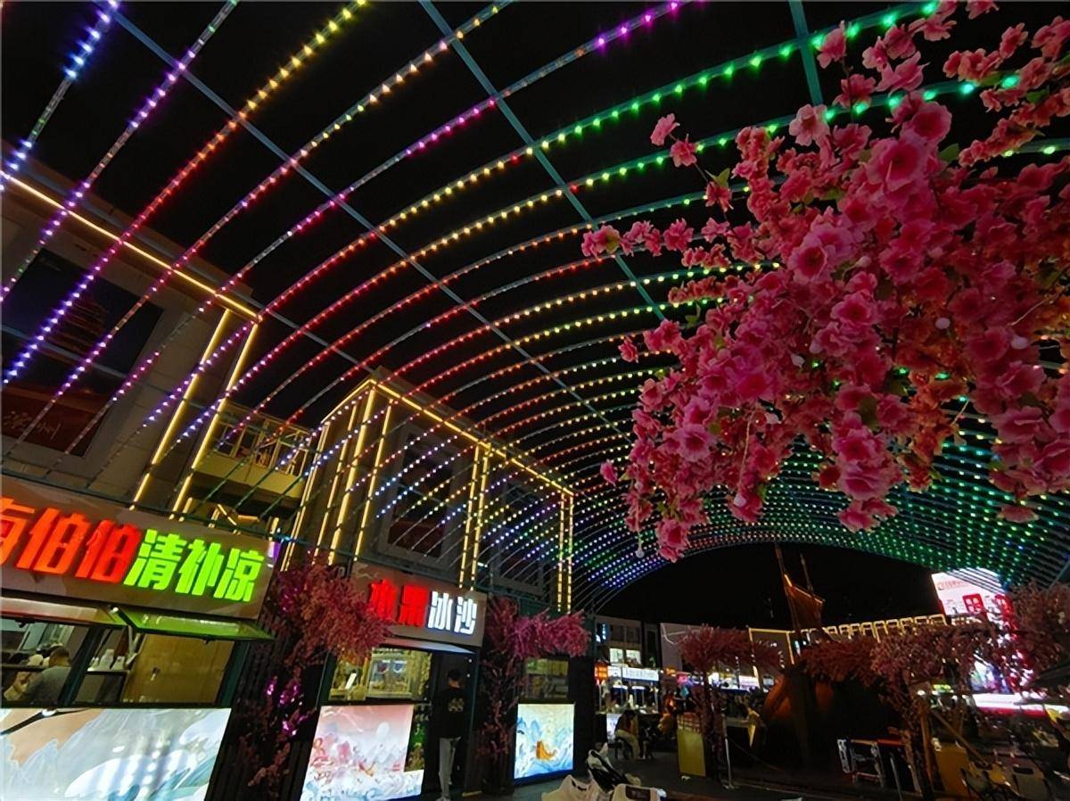 渤海之夜在充分利用街区原有空间的基础上,增设天幕、玫瑰花海、桃花树、激光灯、向日葵草坪等装饰,着力打造融传统与现代、传承与创新为一体,突出呈现青春、传统文化等元素的文创集市,让老城区焕发新活力,不断提升周边居民的幸福感和获得感