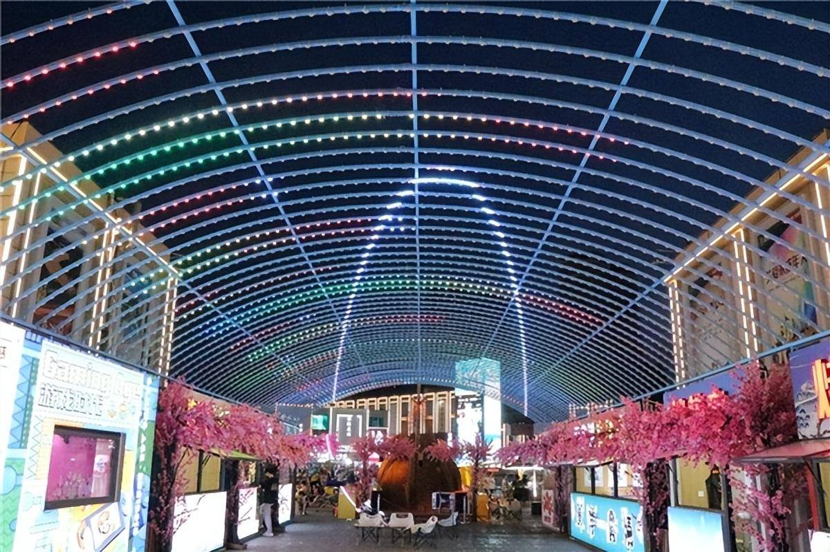位于滨州市滨城区渤海国际东北门处的渤海国际,商铺种类繁多,有61个花车、16个集装箱,打造全覆盖、多维度的业态体系,形成了集吃、喝、玩、乐一站式潮玩为一体的街区,满足“全龄、全时、全新”多元消费需求。