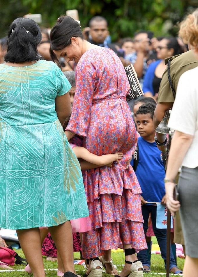 梅根被当地居民包围。梅根似乎在全世界都有很多粉丝!