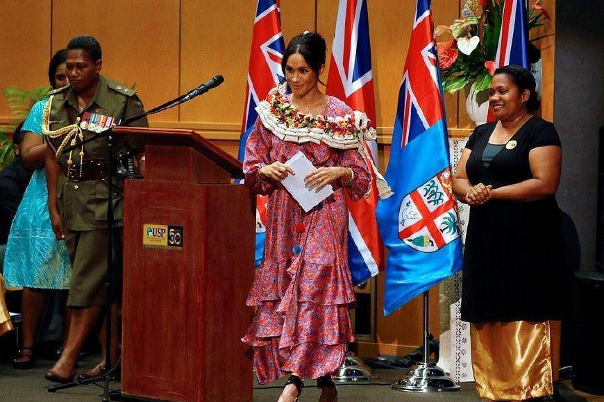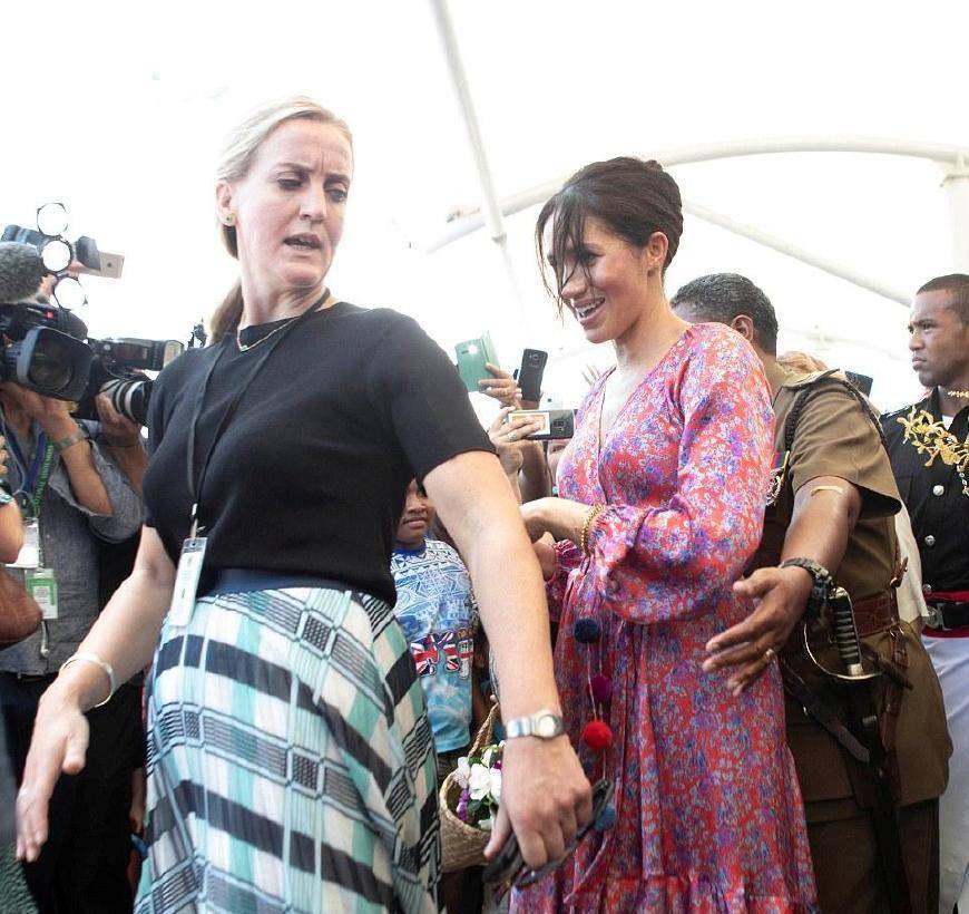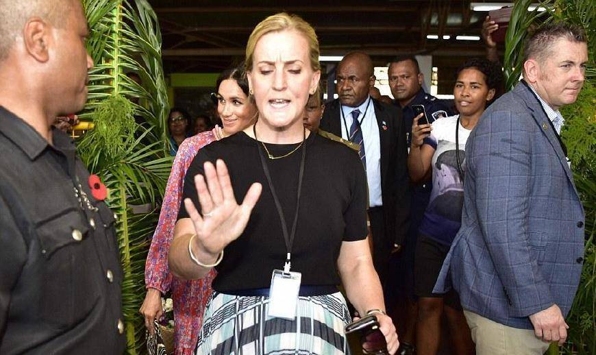 当天,梅根第一次来到斐济的苏瓦市场。会议原定20分钟,但会场人太多。梅根只出场6分钟就被罚下场。