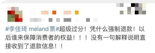 此举引发网友对MELAND CLUB强制退款操作的不满,“李佳琦meland 票”也一度冲上热搜。