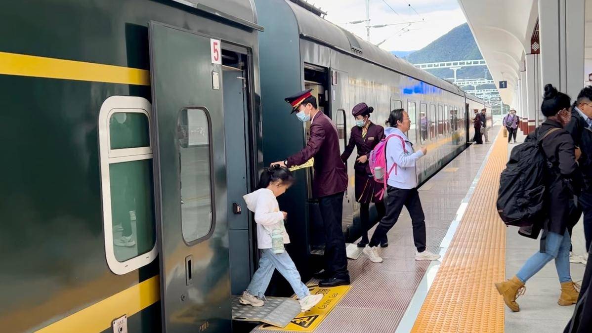 林芝站客运员王佳表示,拉林铁路开通后,不仅便利了群众出行,也为旅客游玩提供了另一种交通选择,促进了林芝旅游业的快速发展,“很多人喜欢来林芝看桃花,现在也可以坐火车来了”。据了解,已开通的拉林铁路段,覆盖地区面积22.63万平方公里,直接受益人口131万。