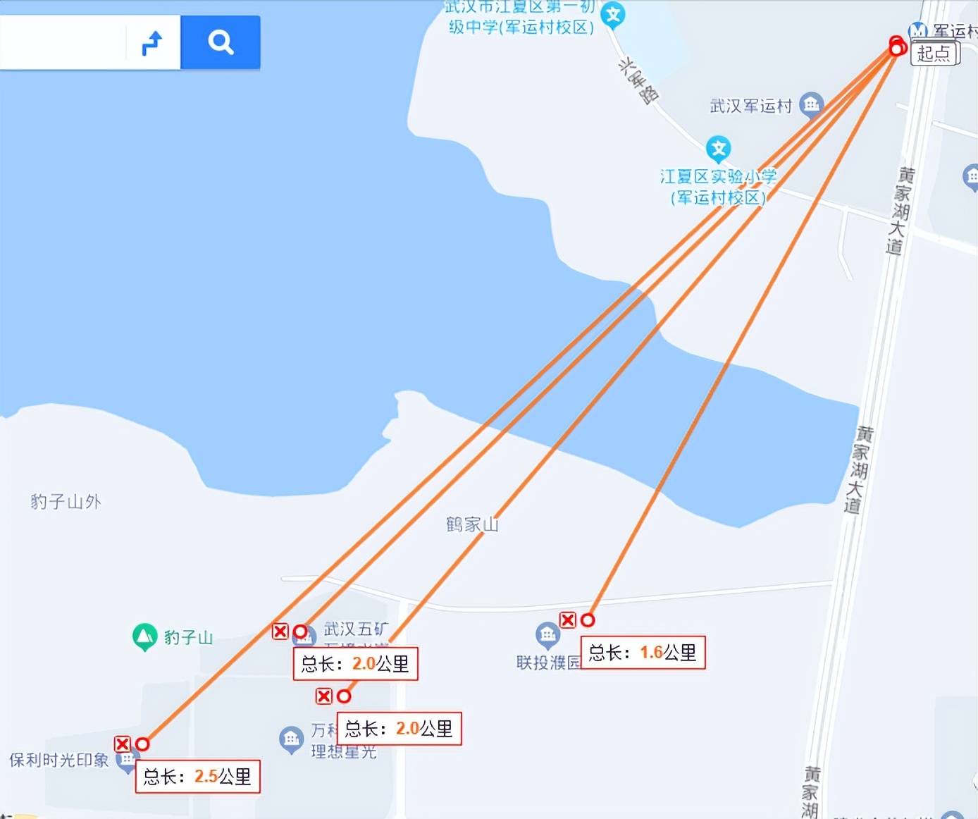 不过黄家湖南岸项目距离地铁站较远,直线距离都在1.6公里以上。