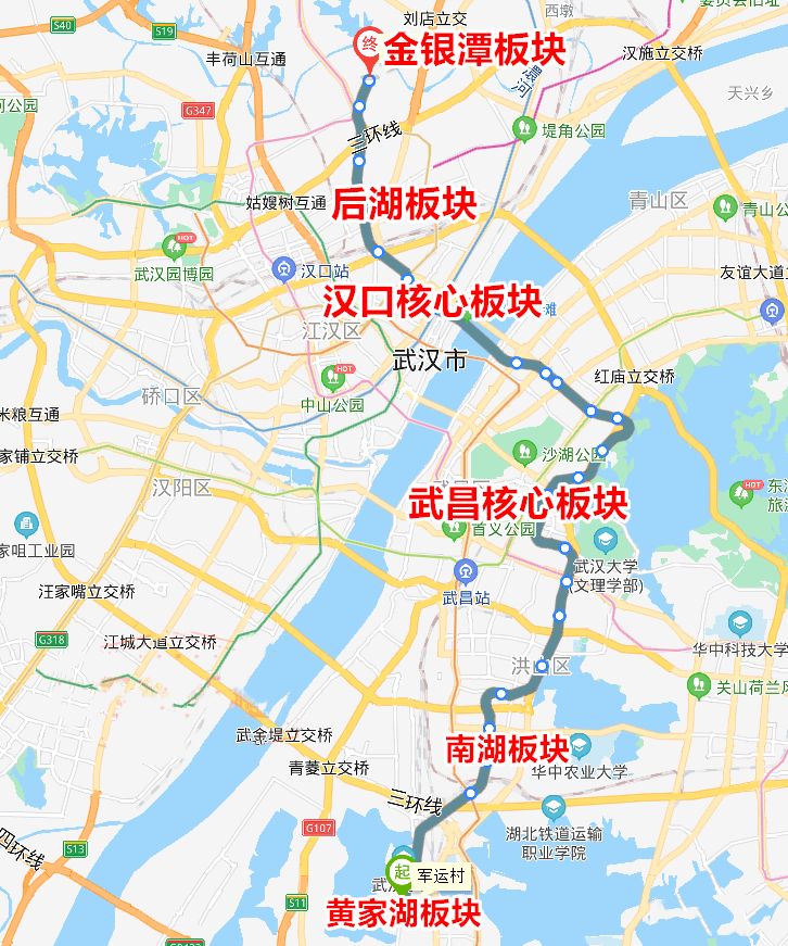文化大道往北连通三环以及珞狮路,属于江夏南北向的主动脉,道路红线宽度60m,沿线红绿灯特别多,加上成熟小区多,自驾体验不如黄家湖。