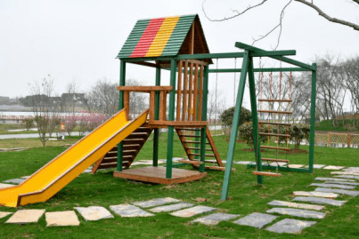 还有可以让小朋友们户外拓展运动的攀爬项目