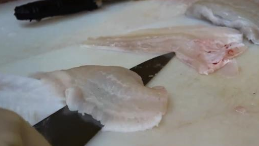 这条鱼称了一下重量是1.5公斤。新鲜的海鲜当然新鲜着吃最好了,我们选的是一鱼两吃的吃法,新鲜的鱼肉做成生鱼片,其他的边角料煮个汤来喝。老板娘的手脚也是很麻利的。很快就把这条鱼的肉给弄出来了。