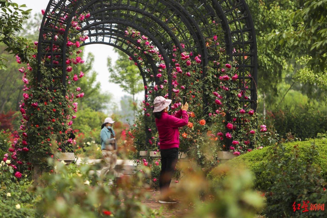 游客在山东平阴赏玫瑰花
