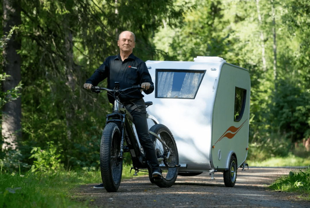最近芬兰一个改装大师造了一个便携露营车,并且用一台电动自行车来牵引它,一起来看看。