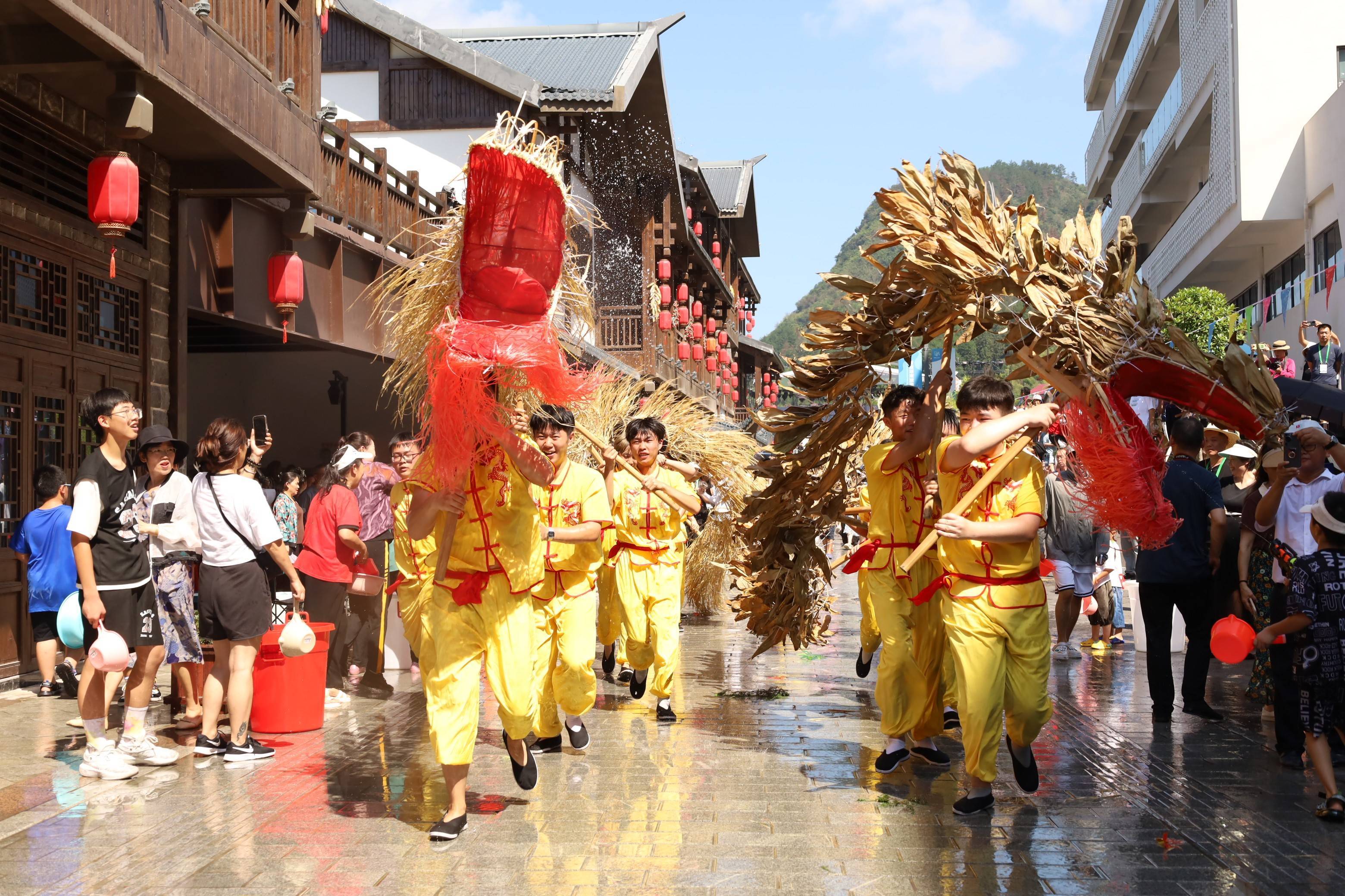 伴随着欢快激昂的音乐,市民与游客争相用水泼向草龙,以祈福保平安。大家一起尽情地泼洒祝福,释放热情,感受凉爽夏日。整个会场沉浸在欢乐的水世界里,现场人头攒动,热闹非凡!