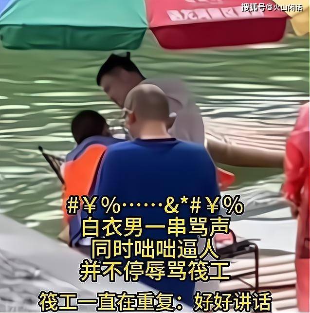 一名疑似是小孩家长的男子就走过来对着筏工张口便骂,双方发生了口角。