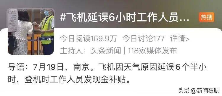 20日凌晨4点31分,一位网友发布在某网站上发布了一则视频,称7月19日,江苏南京一航班因天气原因延误了6个半小时,当乘客准备登机时,工作人员直接发现金补贴。