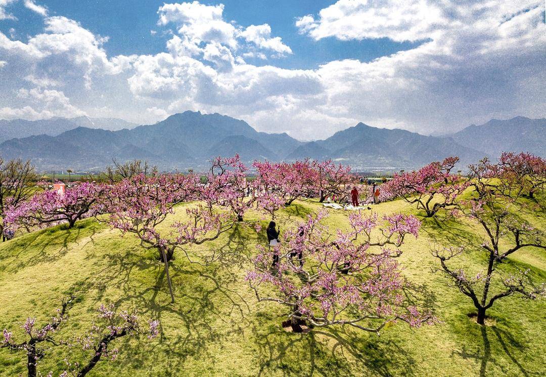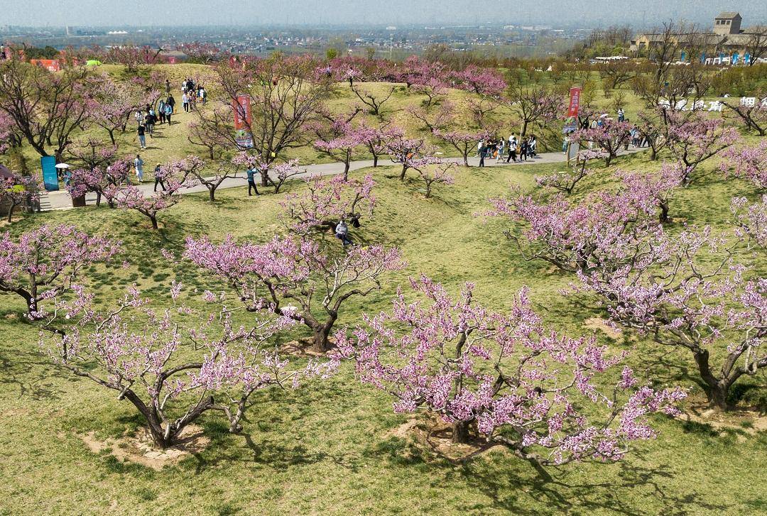 长安区桃花盛开惹游人。西安报业全媒体记者 王健 摄