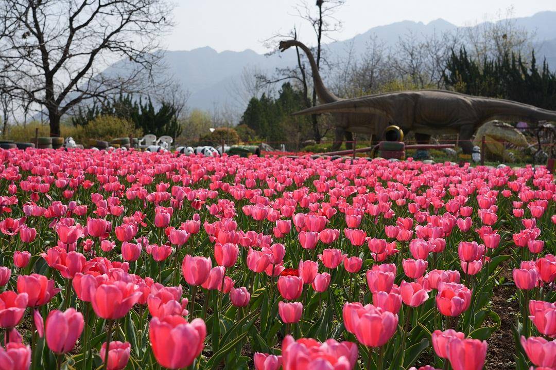 鄠邑区阿姑泉景区里盛开的郁金香。西安报业全媒体记者 王涛 摄