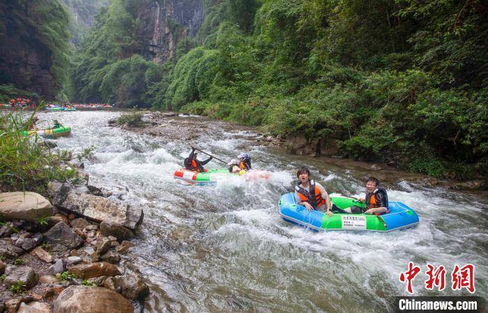 游客在贵州省施秉县杉木河景区漂流。磨桂宾 摄