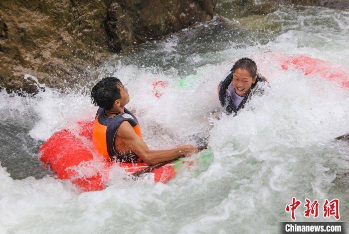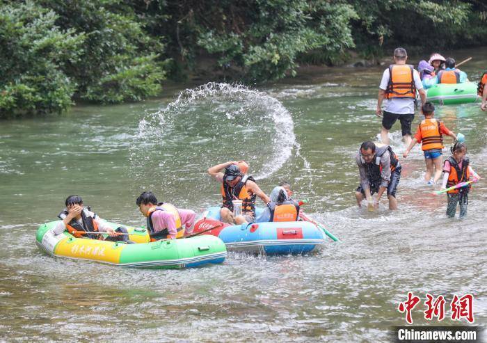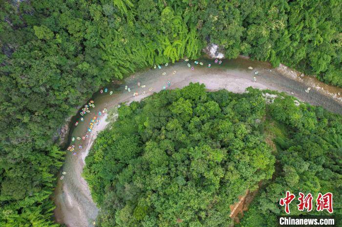 游客在贵州省施秉县杉木河景区漂流。磨桂宾摄
