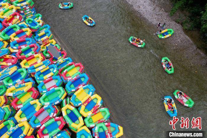 盛夏时节,贵州省黔东南苗族侗族自治州施秉县杉木河景区漂流迎来高峰期,海内外游客纷纷前来漂流休闲,在青山绿水间放松心情,享受凉爽。