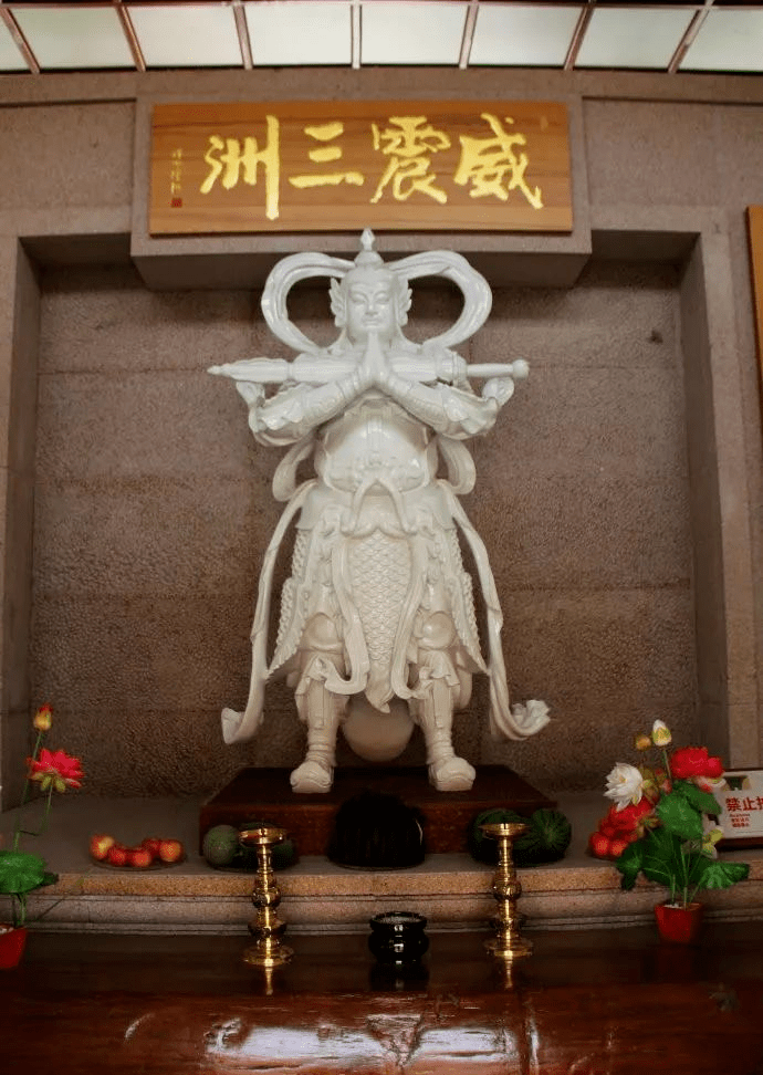 天王殿正中供奉弥勒菩萨,后檐韦陀。