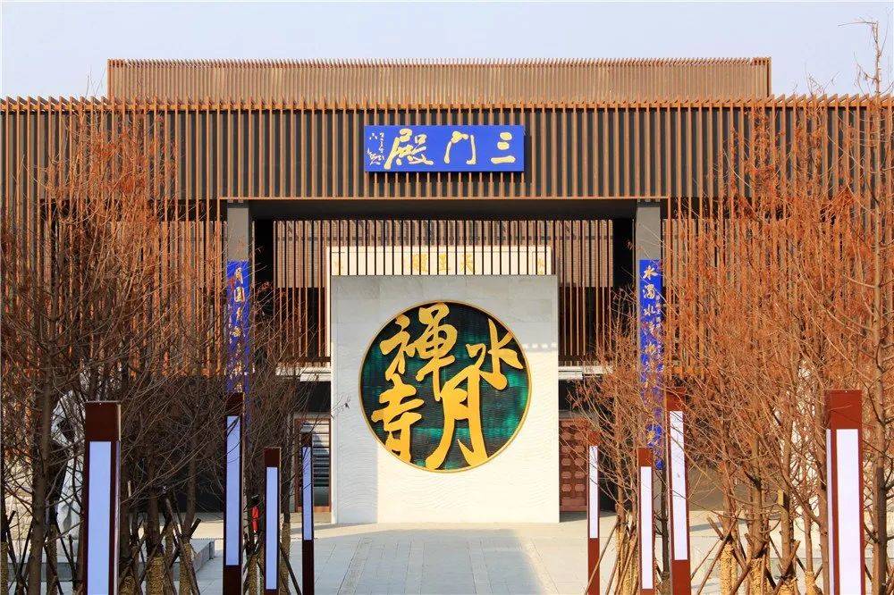 水月禅寺位于白塘河湿地公园东南部,可由公园北大门进入,沿东侧环湖路前行寻访禅寺,亦可由湿地公园东大门进入,经一座拱桥进入水月广场。