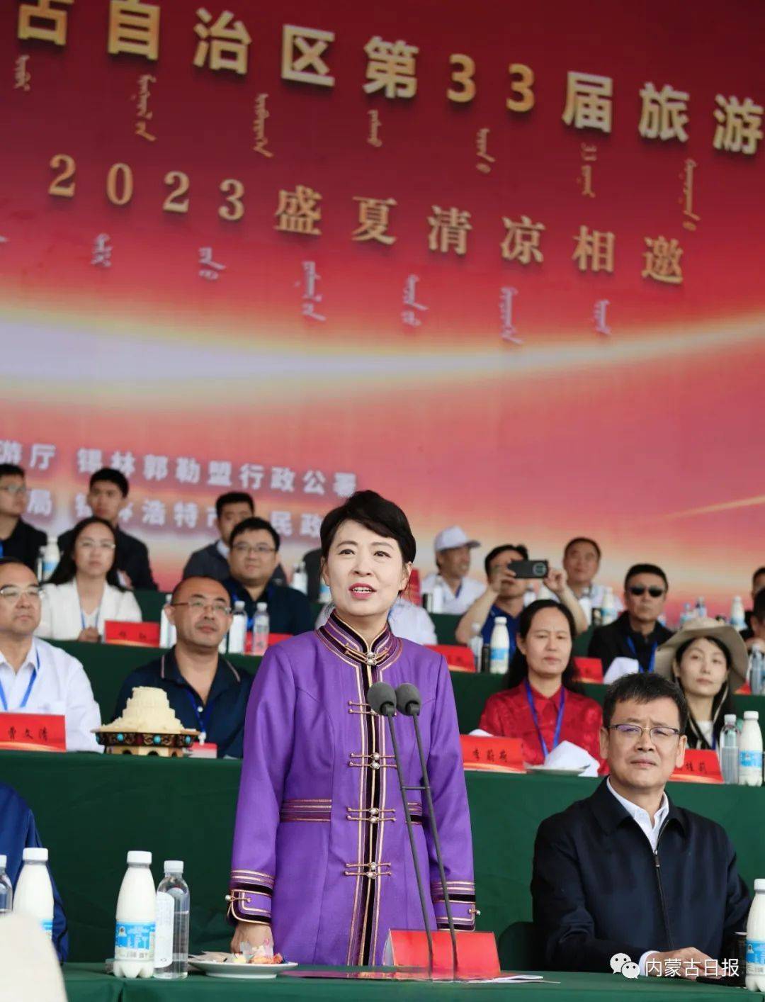 7月23日上午,内蒙古自治区第33届旅游那达慕在锡林郭勒启幕。自治区党委副书记、自治区主席王莉霞宣布开幕。记者 韩卿立 摄