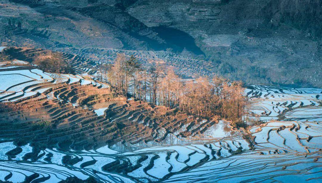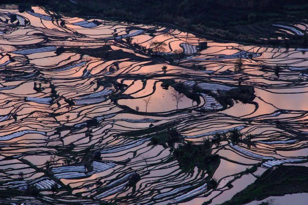 被天空渲染上彩色的梯田,美得简直能把摄影师逼疯。