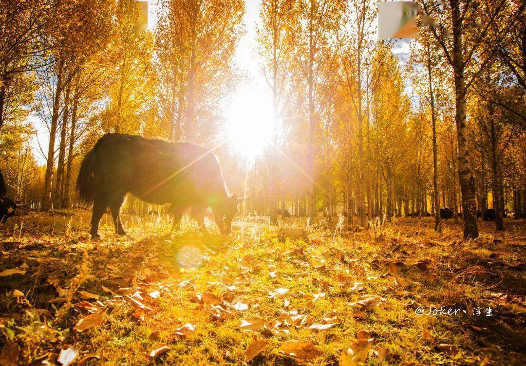 十一月的白哈巴,秋色仍然未褪去,山村笼罩在是斑斓的色彩中。
