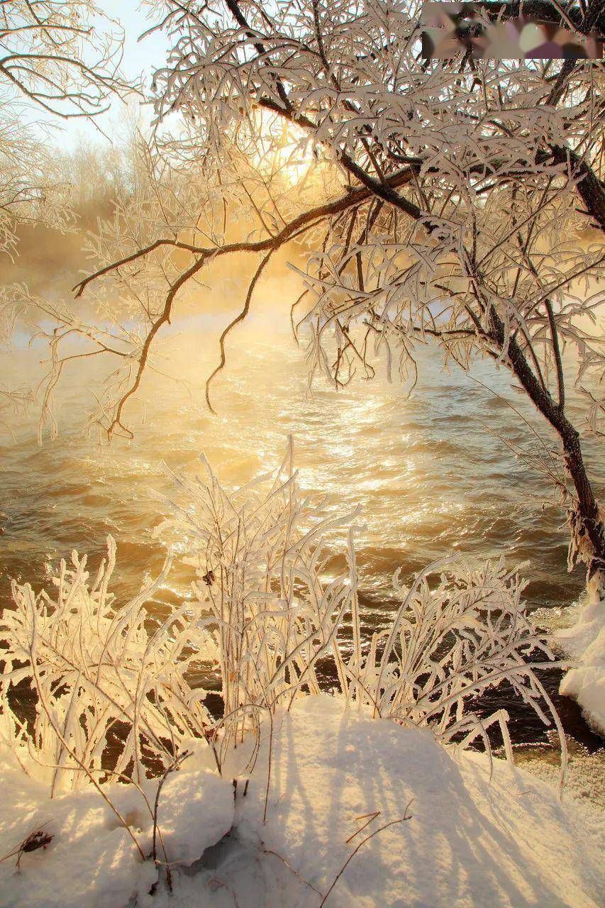 清晨,雾凇在晨雾中若隐若现,朦胧且美。