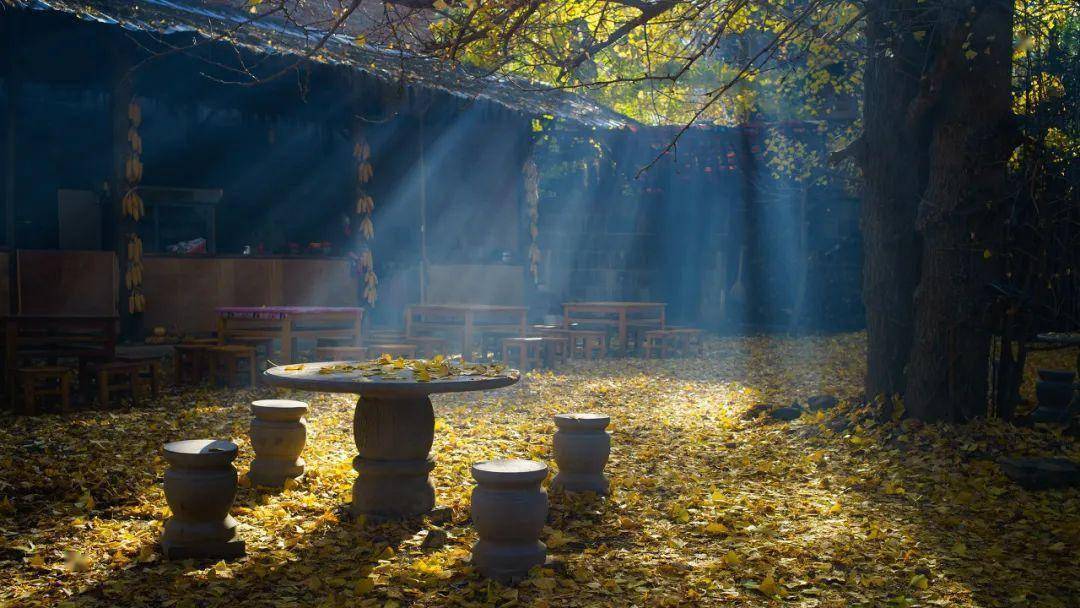 整个村落笼罩在金色的银杏和淡淡的暖阳中,只一眼便让人沉醉其中。