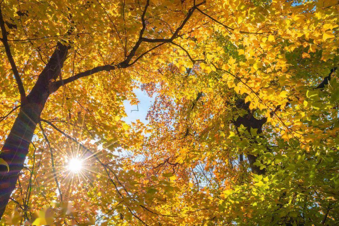 金灿灿的银杏叶在微风中飘扬、摆动,悠闲又惬意,捧一杯热茶坐在银杏树下,心也随之飞扬起来。