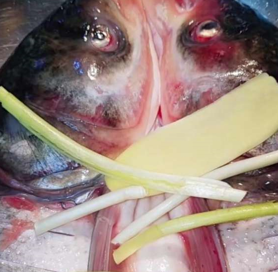 一个大头鱼鱼头,这鱼头比鱼肉还贵,把这鱼头给洗干净。