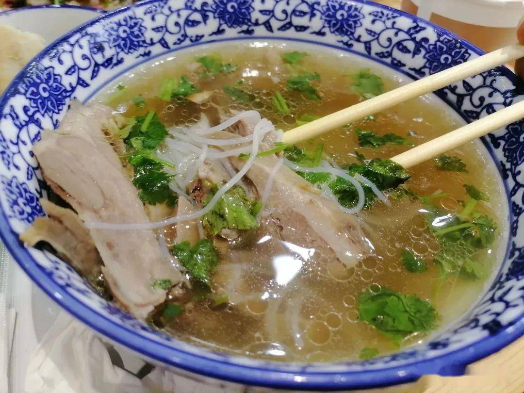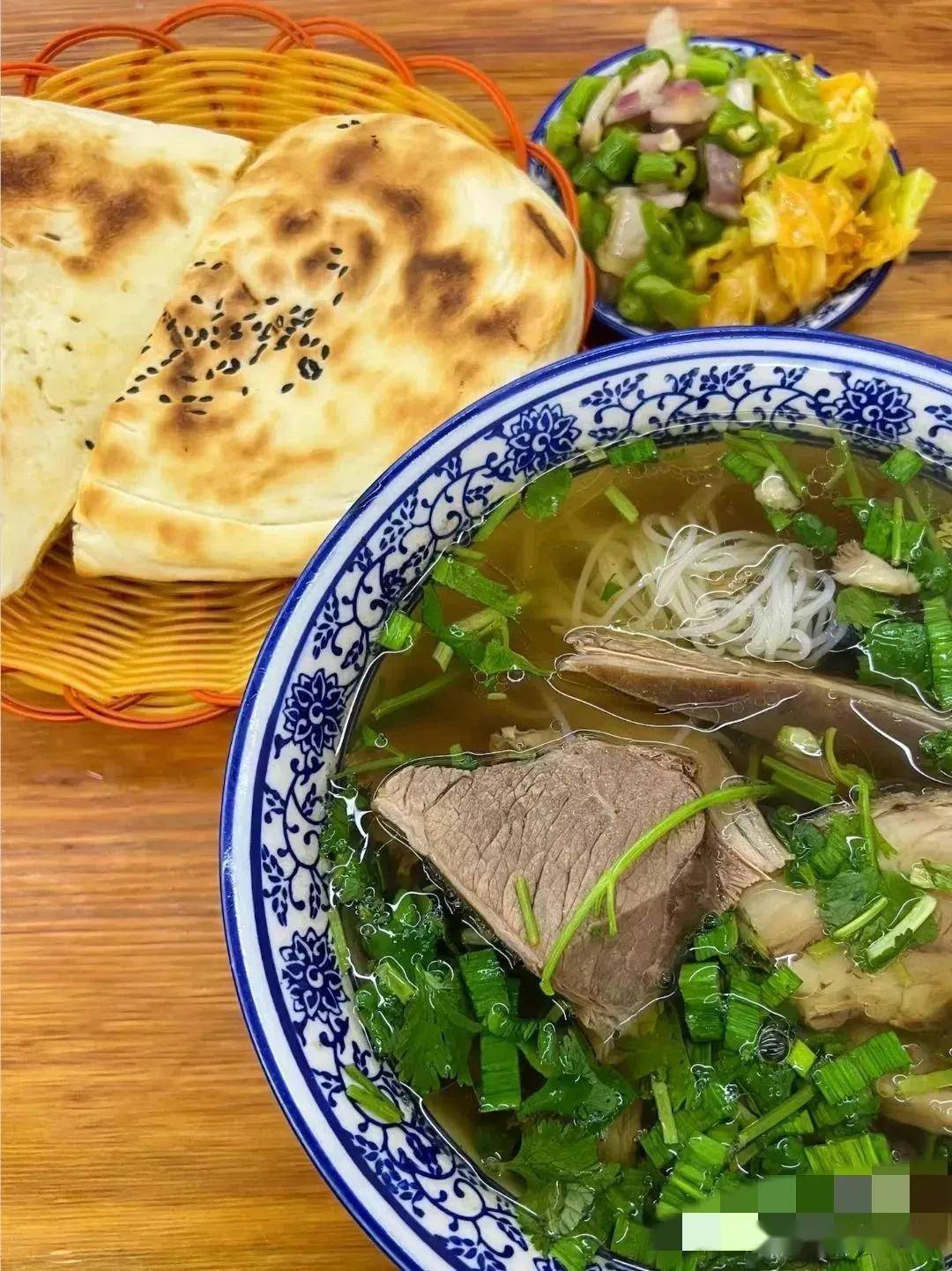 一碗鲜美醇厚的羊肉汤,几块软烂可口的羊肉,一碟青椒泡菜再配一个可爱的月牙饼。羊肉的鲜烂与青椒泡菜的酸辣交织在馨香酥软的月牙饼里,一口下去水火相济、盐梅相成,绝对是人间顶级的美味。这时候再趁烫来一口香浓醇厚带着椒麻香气的羊肉汤,这五脏六腑别提有多舒坦了。