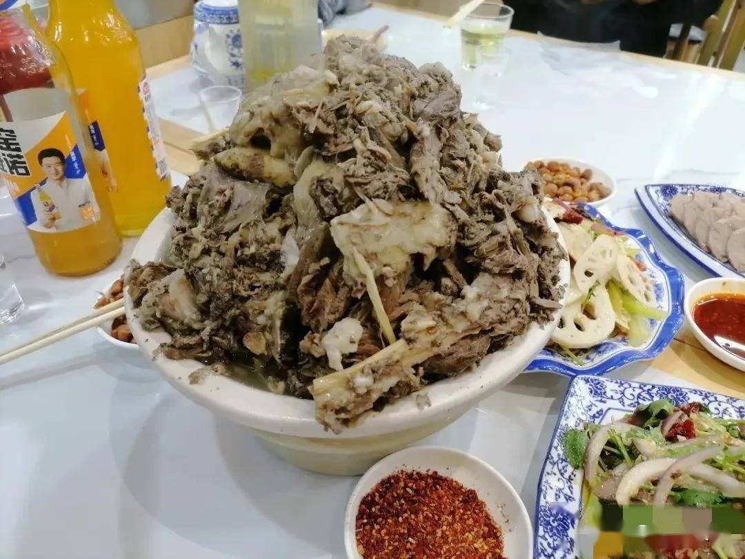 随后店中上了他们的杀手锏,手撕羊肉,蘸着辣椒干碟。看着一大盆羊肉,众人都有些吃惊。听店中厨师长讲,这水盆羊肉是手撕的,既能保证煮的羊肉软烂好撕,在撕的时候顺便能够把羊肉中的血管、肠肚等部位摘除,保证羊肉的纯粹和最好的口感。客人们以喝汤为主,而店员们自己则在忙碌一天后,用剩下的手撕羊肉犒劳自己的辛苦。这家店别出心裁,将之推为一道特色,羊肉肥美,滋味无穷,蘸着干碟,别有风味。