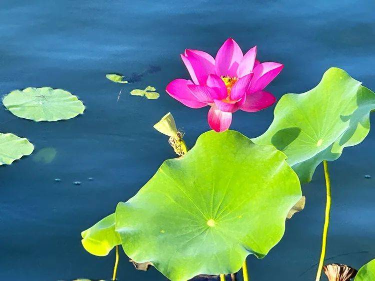 花、蕾、叶组成的荷花仙子,笑迎着习惯早起的老人,前来打卡的青年,嬉戏取乐的儿童。跳舞的大妈,吹笛的大叔,散步的朋友在这荷花掩映下,舞姿更加妖娆,笛声更加动听,步履更加轻盈。