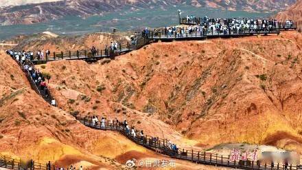 近日,张掖七彩丹霞旅游景区内游人如织,全国各地的游客纷至沓来,欣赏以地貌色彩艳丽、层理交错、气势磅礴、场面壮观而称奇的独特丹霞地貌,领略西北壮美景色。近年来,张掖七彩丹霞旅游景区坚持高起点规划、高标准建设、标准化运营、高强度宣传,积极创建世界级旅游景区,叫响了中国彩虹山、全国最佳低空旅游目的地文旅品牌。(新甘肃·每日甘肃网通讯员殷旭 张凌龙 摄影报道)