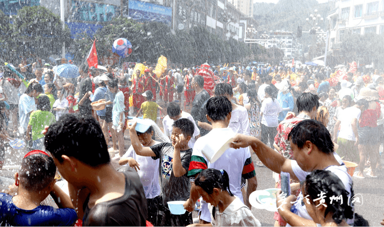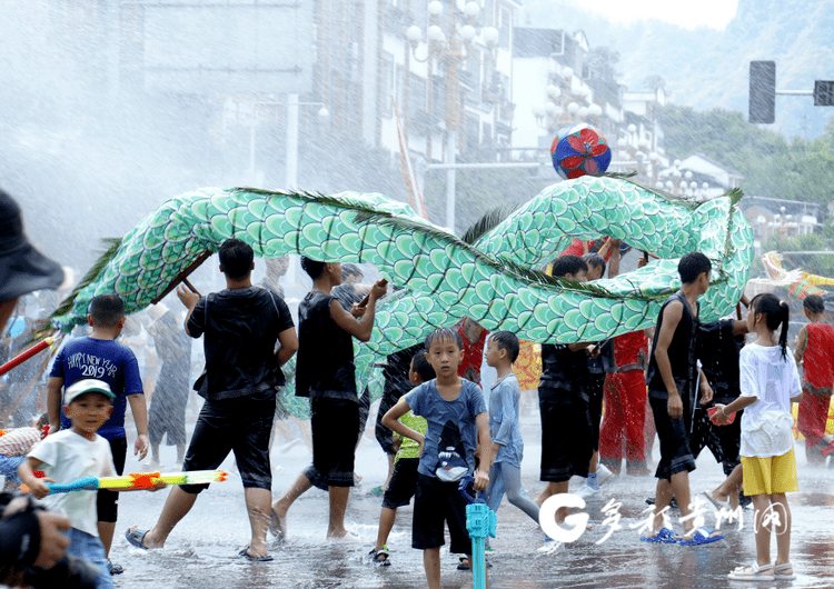 多彩贵州网讯(记者 李浩)7月23日,黔东南州施秉县举行传统“玩水龙”活动。上万名游客参与活动,或追逐二十条翻滚的“水龙”,或相互嬉水狂欢,清凉度夏。