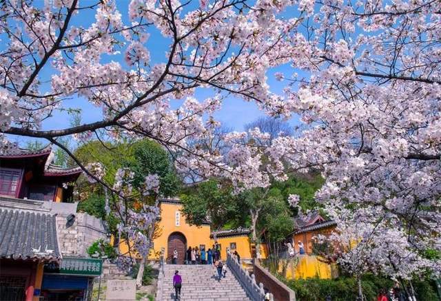 鸡鸣寺环境幽雅。东行可入小九华山,向北为玄武湖。若游人春日登临鸡鸣寺塔,环顾四周樱花怒放,游人如织,六朝古都湖光山色与满眼春色可尽收眼底。