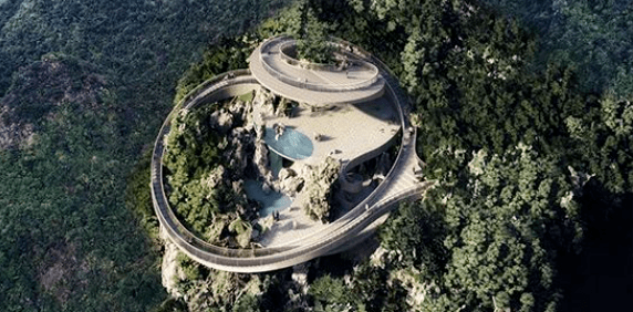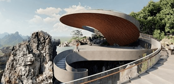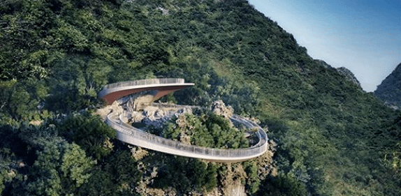 即将落成的“天空之戒”是继“奇妙·夜德天”后又一边关特色旅游体验新项目。该项目地处中越跨境街山体崖壁之上,总投资约5000万元,在原有眺望台的功能基础上,以莫比乌斯环为设计灵感,依山就势,采取“以数字建筑表达东方诗意”的设计理念对项目进行包装设计,建成后将为眺望巡边、游客互动打卡和边关旅游地标性辨识等提供帮助,同时也为游客真正水陆空360°玩转德天提供新的解锁方式。