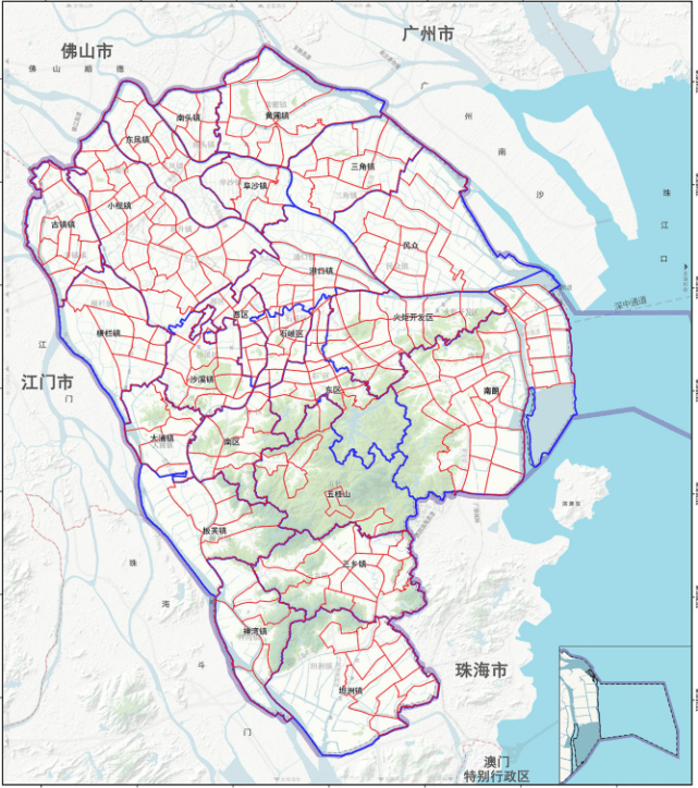 中山市的行政区划分布图