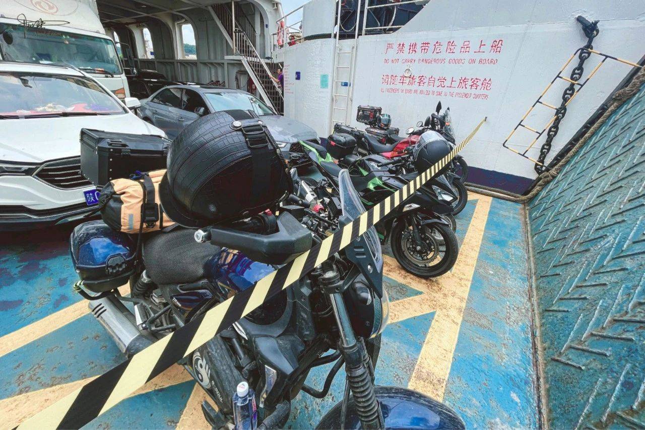 摩托车上船很方便,按指挥的手势走即可,路面很宽,但个人觉得没必要去超车, 依次上船即可。